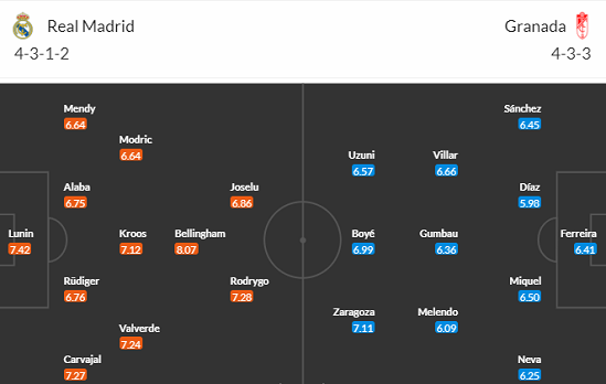 Dưới sự chỉ đạo của HLV lão làng Ancelotti, kền kền trắng vẫn rất đáng sợ. Mùa này, sức mạnh của Real Madrid có phần gia tăng khi xuất hiện Jude Bellingham. Cựu tiền vệ của Dortmund đang thăng hoa rực rỡ. Tiếp Granada trên sân nhà, Los Blancos có lẽ sẽ không quá khó khăn để bỏ túi 3 điểm.