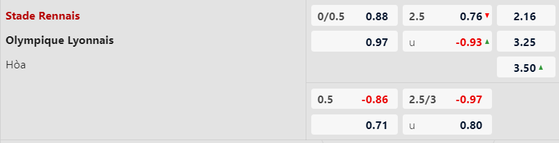 Thông tin tỷ lệ kèo Rennes vs Lyon: