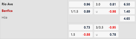 Benfica là đội kèo trên trong trận đấu này, họ chấp -1 1/4 theo handicap, Rio Ave bị đánh giá chưa bao giờ là đối thủ xứng tầm của Benfica.