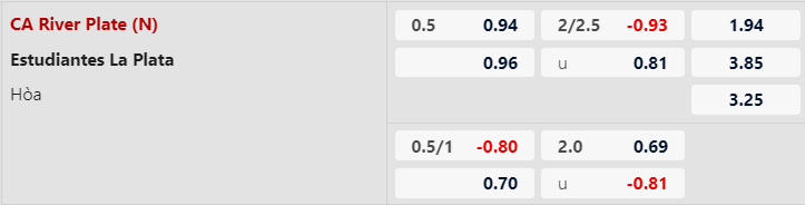 Mức chấp hòa cân tiền ở sân trung lập được đánh giá là tỷ lệ khả quan với River Plate ở trận này.
