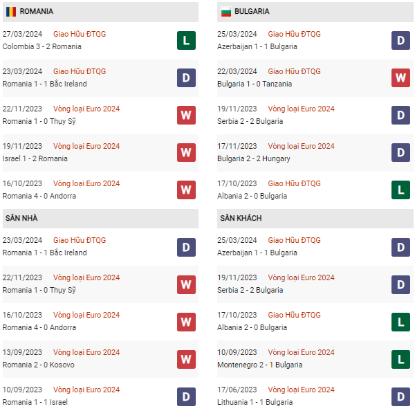 - Romania hòa 1, thua 1 trong 2 trận gặp Bulgaria gần đây.