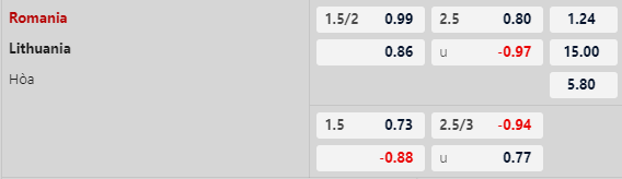 Romania được đánh giá rất cao ở trận đấu tới đây, họ chấp Lithuania 1 1/2 bàn cả trận.