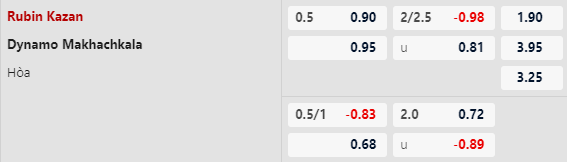Rubin Kazan chỉ để thủng lưới chính xác 1 bàn/trận ở 3 trận đấu mới đây. Được biết, 2 trong số 3 trận đấu kể trên của Rubin Kazan có tỷ số xỉu 2 1/4. Cần biết thêm, Makhachkala chỉ có 4 bàn thắng ở 7 trận đã đá mùa này và ghi không quá 1 bàn/trận. Rõ ràng, Rubin Kazan và Makhachkala không phải cặp đấu có nhiều bàn thắng.