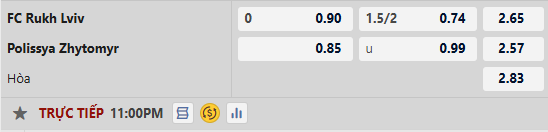 Thông tin tỷ lệ Rukh Lviv vs Polissya: