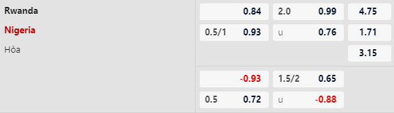 Thông tin tỷ lệ kèo Rwanda vs Nigeria: