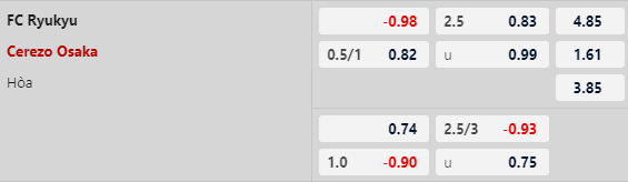 Thông tin tỷ lệ Ryukyu vs Cerezo Osaka: