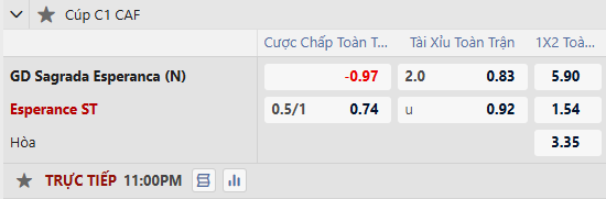 Thông tin tỷ lệ Sagrada Esperanca vs ES Tunis: