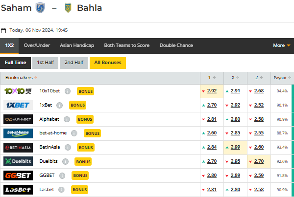 3 trong số 4 trận sân nhà vừa qua thuộc giải VĐQG Oman của Saham không xuất hiện nhiều hơn 2 bàn thắng. Toàn bộ 6 trận sân khách gần đây thuộc giải VĐQG Oman của Bahla đều không chứng kiến nhiều hơn 2 bàn thắng. Bảng tỷ số trận Saham vs Bahla do đó khó thay đổi nhiều hơn 2 lần.