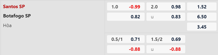 Thông tin tỷ lệ Santos vs Botafogo SP: