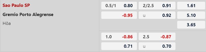 Thông tin tỷ lệ Sao Paulo vs Gremio: