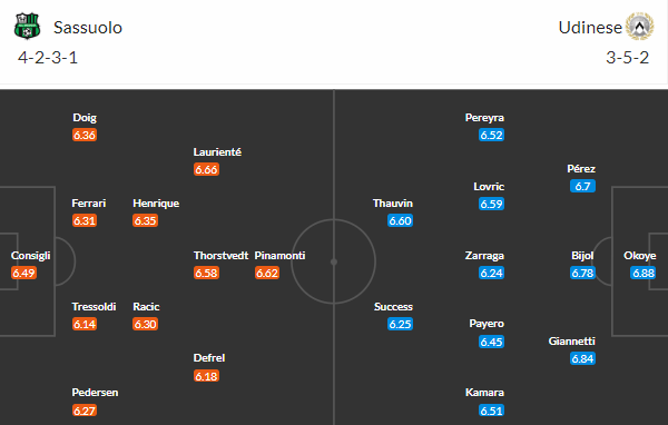 4/5 màn chạm trán gần đây giữa đôi bên đã kết thúc với trên 2 tình huống lưới rung. Sassuolo dù chơi rất tệ nhưng trên sân nhà đội bóng này đã 9 trận liên tiếp tại đấu trường VĐQG không lâm vào cảnh tịt ngòi. Phía đối diện, Udinese đã thủng lưới 7/8 trận sân khách mới nhất. Quyết tâm của cả hai trong cuộc chiến trụ hạng là một nhân tốt nữa để tin vào cuộc đấu sôi nổi.