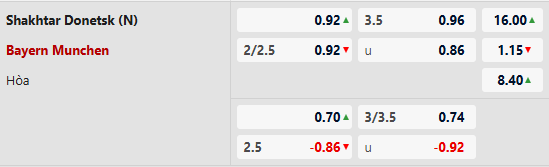 Thông tin tỷ lệ kèo bóng đá Shakhtar Donetsk vs Bayern Munich: