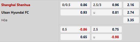 Thông tin tỷ lệ Shanghai Shenhua với Ulsan Hyundai: