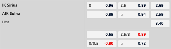 Sàn giao dịch châu Á ghi nhận mức kèo 0:0, nhưng đang có dấu hiệu được đẩy dần lên thành AIK Solna chấp 1/4 trái, cho thấy các nhà đầu tư đang có niềm tin khá lớn dành cho đội khách. Cần nhấn mạnh rằng, trận đối đầu gần nhất giữa hai đội trên sân của Sirius cũng xuất hiện kèo dao động từ 0:0 đến 1/4:0 như trận này và AIK Solna là đội được hưởng trọn niềm vui.