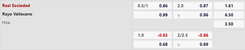 Thông tin tỷ lệ kèo Sociedad vs Vallecano: