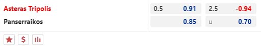 Thông tin tỷ lệ Asteras Tripolis vs Panserraikos: