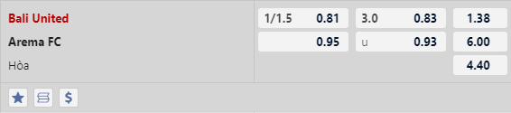 Thông tin tỷ lệ Bali United vs Arema Malang: