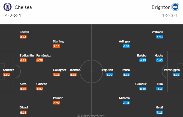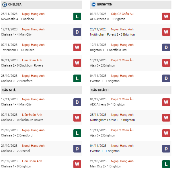 - Chelsea thắng 7, hòa 4, thua 3 trong 14 trận đối đầu Brighton trước đây.