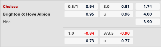 Sàn giao dịch châu Á ghi nhận mức kèo Chelsea chấp 0:3/4, tỷ lệ mà đội chủ nhà rất vô duyên khi đối đầu với Brighton.