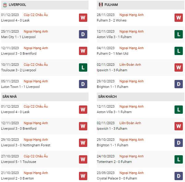 - Liverpool thắng 7/10 trận đối đầu Fulham trước đây.