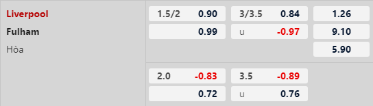 Thông tin tỷ lệ kèo bóng đá Liverpool vs Fulham: