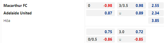 Thông tin tỷ lệ Macarthur vs Adelaide United: