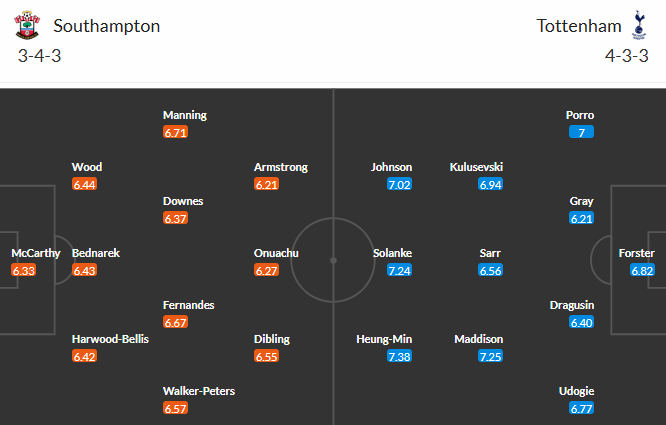 Đội hình dự kiến Southampton vs Tottenham: