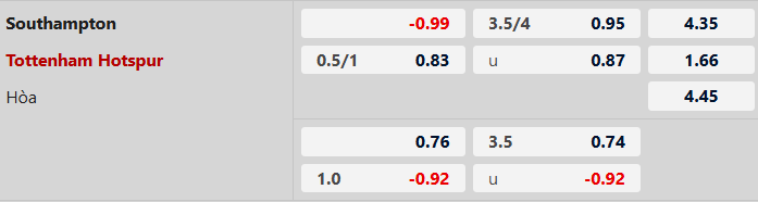 So với Southampton, rõ ràng mọi đội bóng tại giải Ngoại Hạng Anh thời điểm này đều phải là đội được xếp kèo trên. Tottenham cũng không phải ngoại lệ khi Gà Trống được đánh giá chấp 3/4 bàn. 6 lần gặp nhau gần nhất tại giải Ngoại Hạng Anh, Tottenham thắng 3 trận và chỉ để thua 1 lần. Trước đội bóng quá yếu và đang gặp cơn khủng hoảng như Southampton, cơ hội giành 3 điểm của Gà Trống vẫn là rất lớn.