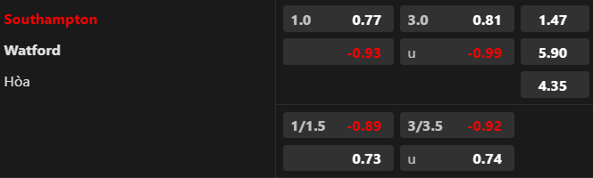 Thông tin tỷ lệ bóng đá Southampton vs Watford:
