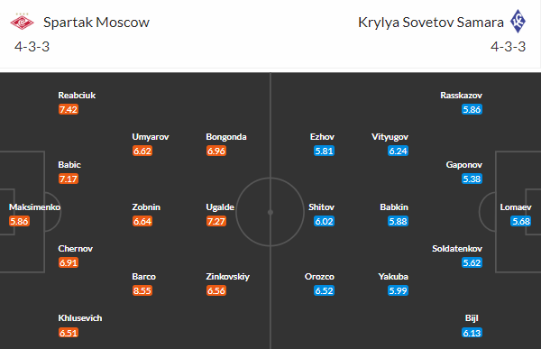 Đội hình dự kiến Spartak Moscow vs Krylya Sovetov: