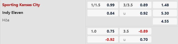 Thông tin tỷ lệ Sporting Kansas vs Indy Eleven: