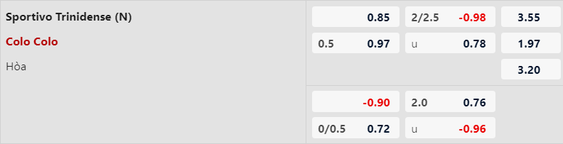Thông tin tỷ lệ Sportivo Trinidense vs Colo Colo: