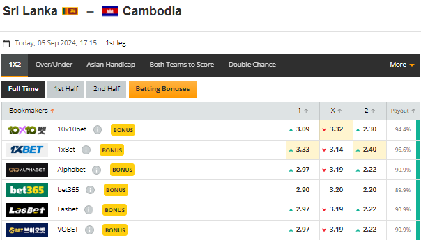 Thông tin tỷ lệ Sri Lanka vs Campuchia: