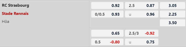 Thông tin tỷ lệ kèo Strasbourg vs Rennes: