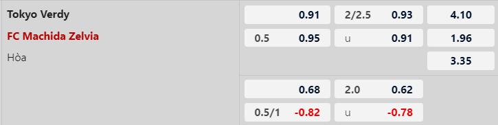 Thông tin tỷ lệ Tokyo Verdy vs Machida Zelvia: