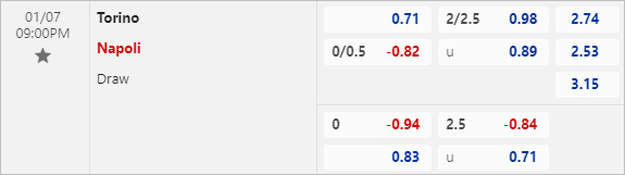 Chính vì lẽ đó mà với điều kiện được chơi trên sân nhà, Torino thực sự sẽ hết sức khó chịu với Napoli ở trận đấu tới. Trên thị trường, nhà cái cũng thể hiện mối nghi ngại ấy khi chỉ xếp vị khách đến từ Campania ở kèo -1/4 cùng điểm ăn bỏ sâu. So với những lần làm khách đến Olimpico Grande Torino gần đây, mức kèo này rõ ràng cho thấy sự thất thể của thầy trò HLV Walter Mazzarri.