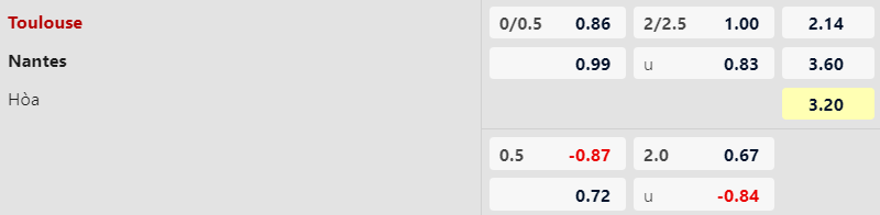Thông tin tỷ lệ kèo Toulouse vs Nantes: