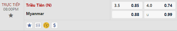 Thông tin tỷ lệ Triều Tiên vs Myanmar:
