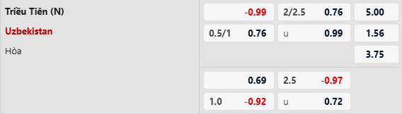 Thông tin tỷ lệ Triều Tiên vs Uzbekistan:
