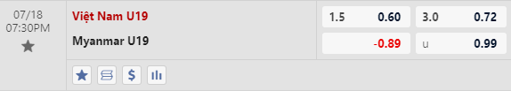 Thông tin tỷ lệ U19 Việt Nam vs U19 Myanmar: