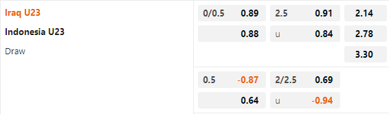 U23 Iraq không được đánh giá quá cao ở trận đấu này khi chỉ có kèo chấp -1/4 trước U23 Indonesia.