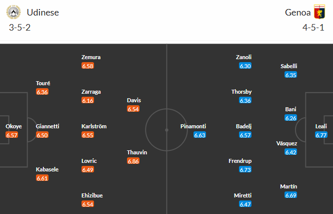 - Udinese thắng 3, hòa 6, thua 1 trong 10 trận gặp Genoa gần đây.