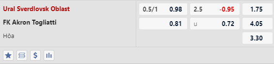 Ural chỉ có được 3 bàn thắng ở 3 trận đấu vừa rồi và có trung bình có 1 bàn/trận. Được biết, 4 trong số 6 trận đấu gần nhất của Ural có tỷ số xỉu 2 1/2. Cần biết, 5/7 trận đấu vừa rồi của Akron Togliatti cũng có tỷ số xỉu 2 1/2.