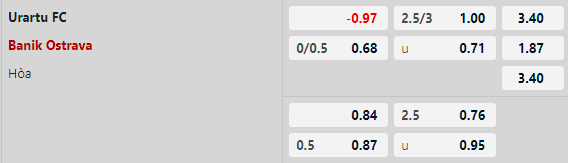Thông tin tỷ lệ Urartu vs Banik Ostrava: