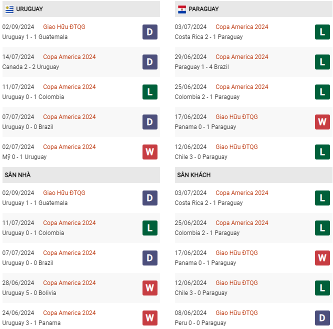 Thống kê phong độ Uruguay vs Paraguay:
