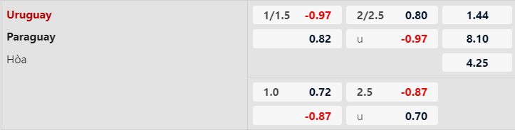 Ngược lại, Paraguay vẫn chật vật ở loạt trận vòng loại World Cup với chỉ 1 điểm trong 3 trận sân khách. Với tỷ lệ Uruguay chấp Paraguay 1 1/4 bàn cả trận, kèo trên là sự lựa chọn phù hợp. Uruguay không để thủng lưới bàn nào trong 3 lần chạm trán gần nhất với Paraguay và chuyên gia dự đoán sẽ một kết quả tương tự trong trận đấu này khi xét đến sức tấn công yếu kém của Paraguay. Mức Tài Xỉu là 2 1/4, chọn Xỉu là an toàn.