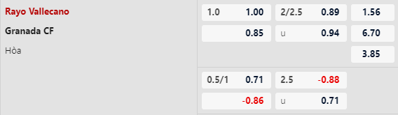 Thông tin tỷ lệ kèo Vallecano vs Granada:
