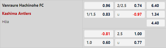 Thông tin tỷ lệ Vanraure Hachinohe vs Kashima Antlers:
