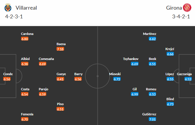 Đội hình dự kiến Villarreal vs Girona: