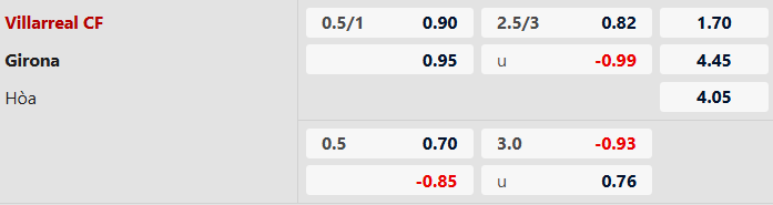 Thông tin tỷ lệ kèo Villarreal vs Girona: